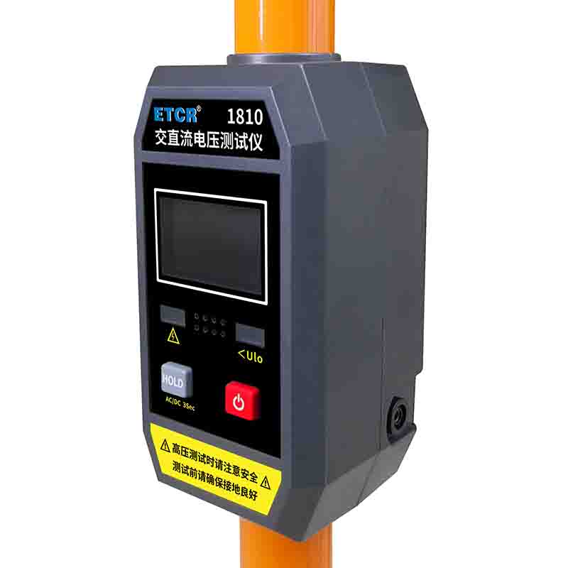 ETCR1810交直流電壓測試儀又稱地鐵專用直流電壓測試儀、高壓電壓測試儀,用于電力高低壓線路及鐵路接觸網線路對地電壓的測量及驗電報警,電壓測量范圍可達35kV。儀表采用伸縮桿結構,收縮長度1600mm,展開長度5000mm。輸電線路停電維護時,由于電容效應,鄰近運行線路會產生感應電壓,嚴重威脅檢修測試儀器及運維作業人員的安全,本儀表可快速測量輸電線路運行時的電壓或維護時的感應電壓,保護設備及作業人員的安全。