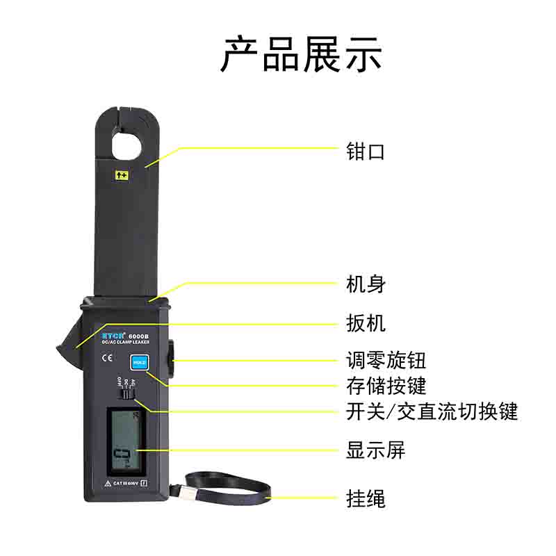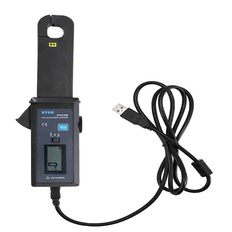 ETCR6000B直流/交流鉗形漏電流表具有數據保持、數據存儲等功能,配備USB接口、通訊線和監控軟件,可以通過電腦在線實時監控與歷史查詢,動態顯示,有最大、最小、平均值指示,具有歷史數據讀取、保存、打印等功能。
