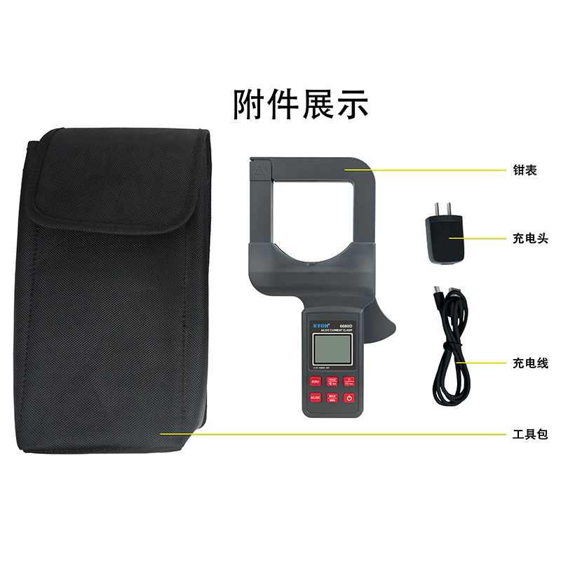 ETCR6680D大口徑直流/交流鉗形電流表鉗表具有直流/交流真有效值測量、最大值/最小值/平均值測量等功能。鉗表具有數(shù)據(jù)保持、藍牙通訊功能,使用大容量鋰電池type-c充電口,是一款新型的電工安全檢測必備工具。