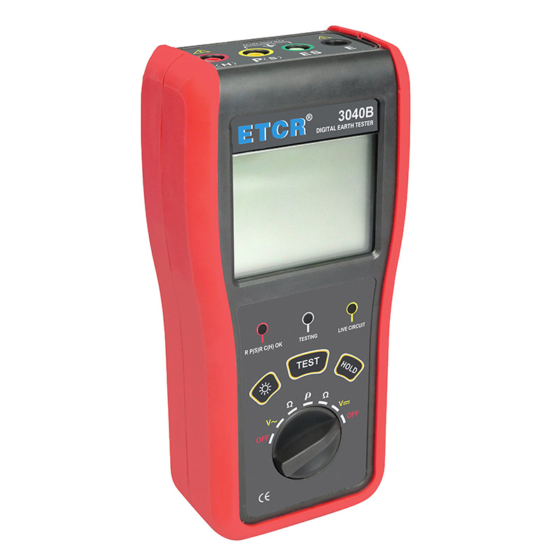 ETCR3040B接地電阻/土壤電阻率測(cè)試儀又稱(chēng)土壤電阻率測(cè)試儀,專(zhuān)為現(xiàn)場(chǎng)測(cè)量接地電阻、接地電壓、土壤電阻率而精心設(shè)計(jì)制造的,采用數(shù)字及微處理技術(shù),精密4線法、3線法或2線法測(cè)量接地電阻。儀表具有輔助接地樁報(bào)警功能,儀表在測(cè)試時(shí)能顯示輔助接地樁的阻值,指示燈顯示輔助接地樁接地是否良好,避免輔助接地極接地電阻過(guò)大引起的誤差。測(cè)試接地電壓時(shí),當(dāng)電壓大于36V時(shí)發(fā)出報(bào)警,保護(hù)操作人員安全。