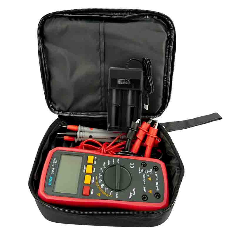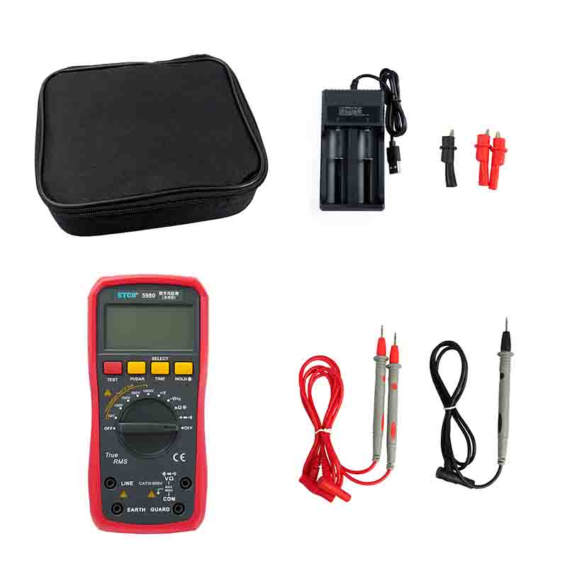 ETCR5980數(shù)字兆歐表(多用表)是一款數(shù)字式兆歐表+數(shù)字萬用表。絕緣電阻測試電壓可選50V/100V/250V/500V/1000V。它可適時監(jiān)測絕緣電阻測試電壓,有效避免因輸出電壓不符合額定值要求而造成的誤判。儀表絕緣電阻測量最高可達到20GΩ,可根據(jù)需要設(shè)置測量時間,測量完畢后自動保持測量結(jié)果。數(shù)字多用表功能有交直流電壓、電阻、電容、頻率、二極管及通斷測量等。本產(chǎn)品適用于測量變壓器、電機、電纜、開關(guān)、電器等各種電氣設(shè)備及絕緣材料的絕緣電阻,對各種電氣設(shè)備進行保養(yǎng)維修、試驗及檢定。它結(jié)構(gòu)精巧,攜帶方便,是您理想的電工、電子測試儀表。