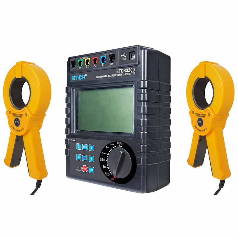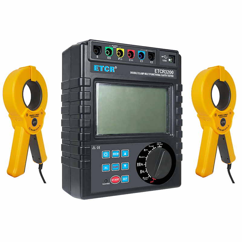 ETCR3200雙鉗接地電阻測試儀,由主機(jī)、電流鉗(雙鉗)、數(shù)據(jù)軟件、測試線、輔助接地棒、通訊線等組成。主機(jī)超大LCD顯示,具有背光、棒圖指示,一目了然。同時能存儲2000組數(shù)據(jù),通過USB接口數(shù)據(jù)軟件可以實(shí)現(xiàn)歷史數(shù)據(jù)讀取、查閱、保存、報表、打印等功能。