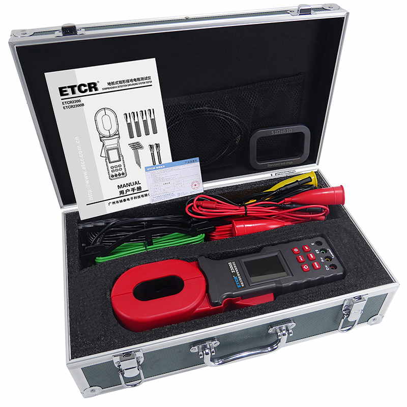 ETCR2300B地樁式鉗形接地電阻表又稱地樁式鉗形接地電阻表、地樁式鉗形表,用于現場測量接地電阻、土壤電阻率、接地電流、接地電壓。儀表具有鉗表法、二線法、三線法、四線法、選擇法等各種測量方法,儀表導入FFT(快速傅立葉變換)技術、AFC(自動頻率控制)技術,具有獨特的抗干擾能力和環境適應能力,重復測試一致性強,確保測量的高精度、高穩定性和高可靠性。