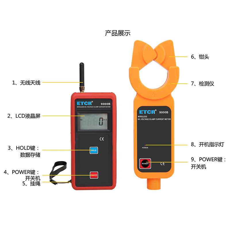 ETCR9000B無線高低壓鉗形電流表又稱架空線路負(fù)載測試儀,高壓負(fù)載測試儀、高空電流測試儀、高壓電流遙測儀,用于測量架空線路高低壓電流。儀表由專用鉗形電流表配高壓絕緣桿組成。若不使用絕緣桿,還可以當(dāng)作高精度低壓鉗形電流表使用。廣泛應(yīng)用于變電站﹑發(fā)電廠﹑工礦企業(yè)以及檢測站﹑電工維修部門進(jìn)行電流檢測和野外電工作業(yè)等。