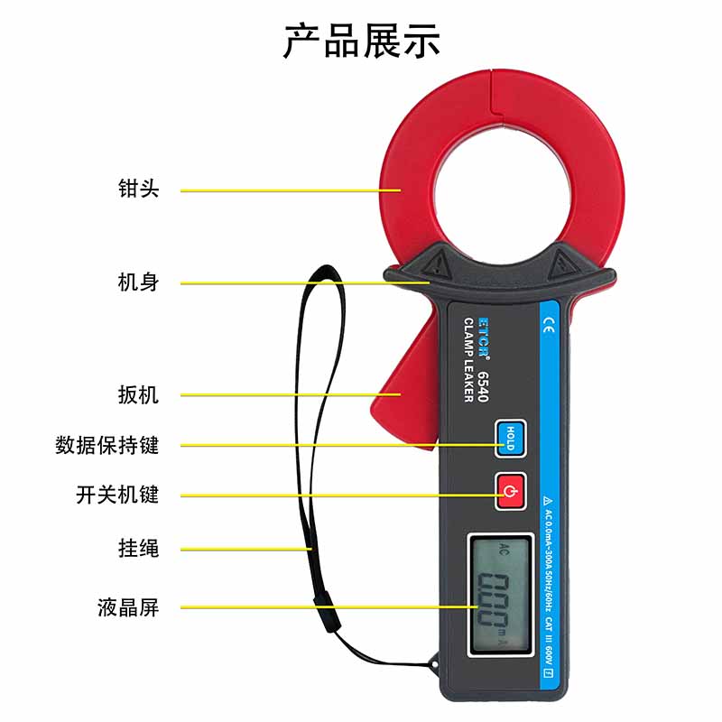 ETCR6540迷你型鉗形漏電流表具有峰值保持、數據保持、數據存儲等功能。