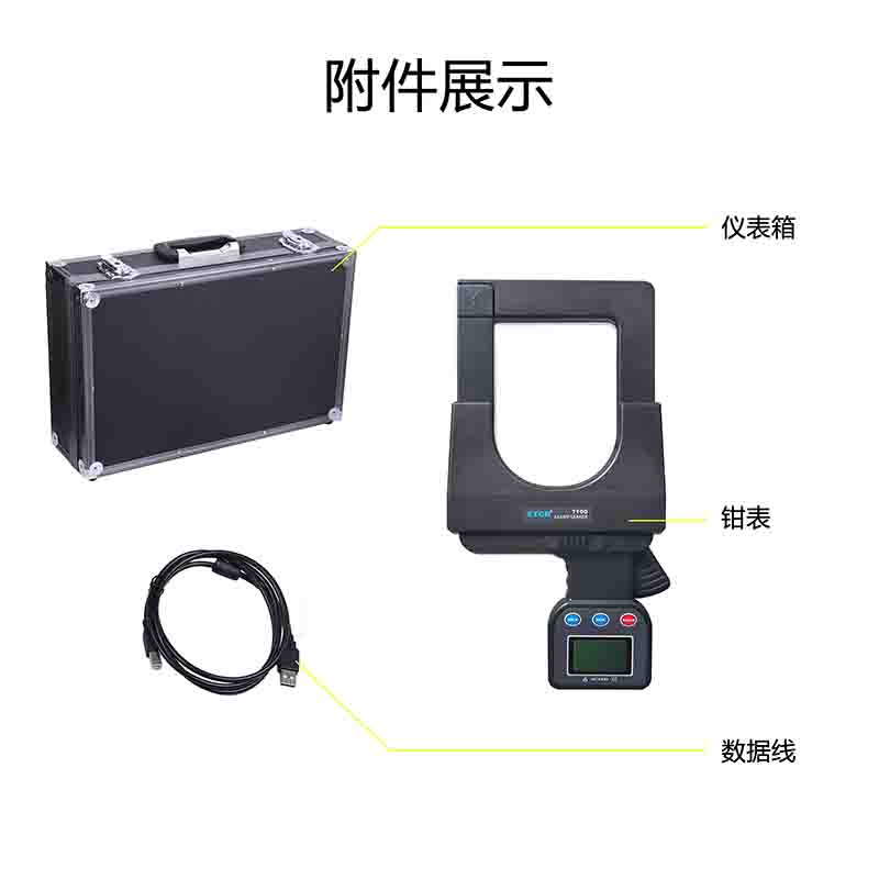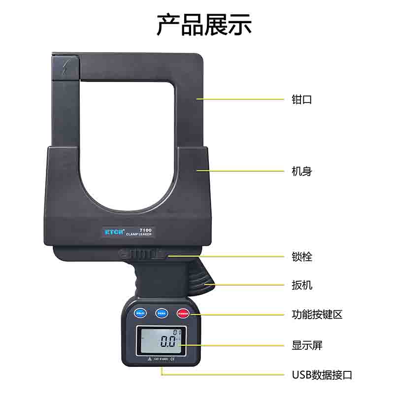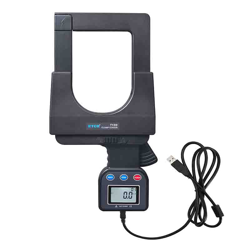 ETCR7100超大口徑鉗形漏電電流表具有峰值保持、數(shù)據(jù)保持、數(shù)據(jù)存儲等功能。具有USB通訊功能,通過USB接口及上位機軟件可以在PC端在線實時監(jiān)測,動態(tài)顯示最大、最小、平均值,具有報警值設(shè)定及報警指示功能,具有歷史數(shù)據(jù)讀取、保存、分析等功能。