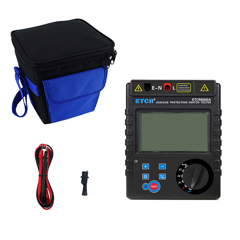 | ETCR8600B漏電保護器測試儀 | 5mA~1000mA,十六檔 | 0ms~999ms | AC 0~600V | 觸摸彩屏 | 鋰電池 |