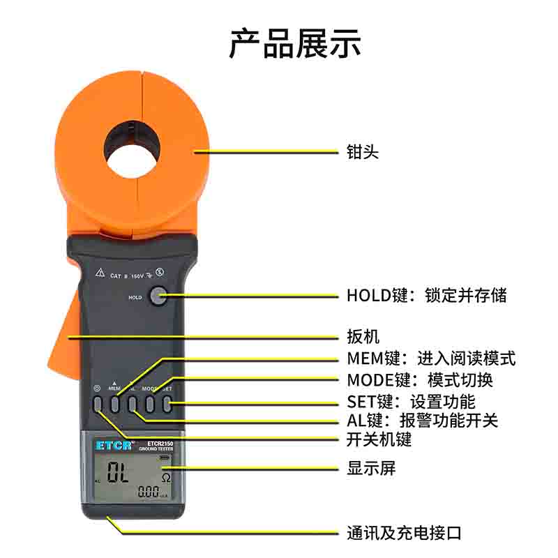 ETCR2150環(huán)路電阻測試儀電阻、電流、測試時(shí)間同屏顯示,測試結(jié)果一目了然。配備可充電鋰電池,使用方便。聲光報(bào)警功能,數(shù)據(jù)存儲(chǔ)、數(shù)據(jù)保持功能。時(shí)鐘功能,顯示當(dāng)前測試時(shí)間。USB接口數(shù)據(jù)上傳功能。