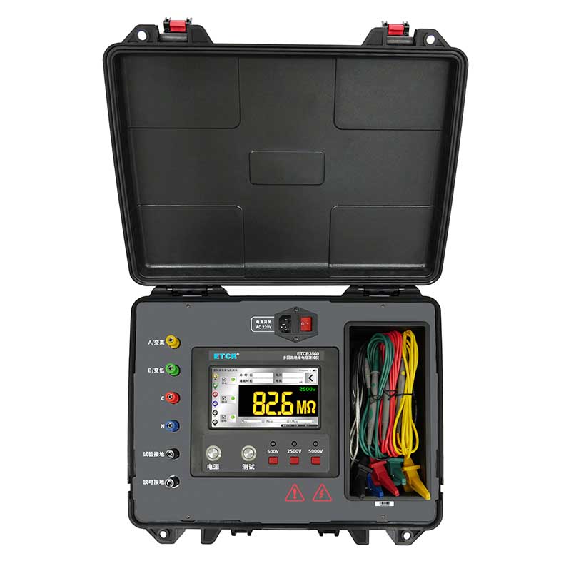 ETCR3560多回路絕緣電阻測試儀又稱多回路兆歐表、多通道絕緣電阻表,用于驗證電力變壓器、輸電線纜、開關等裝置絕緣強度的試驗儀器,也可以用于其它設備裝置的多回路絕緣電阻測試儀器。