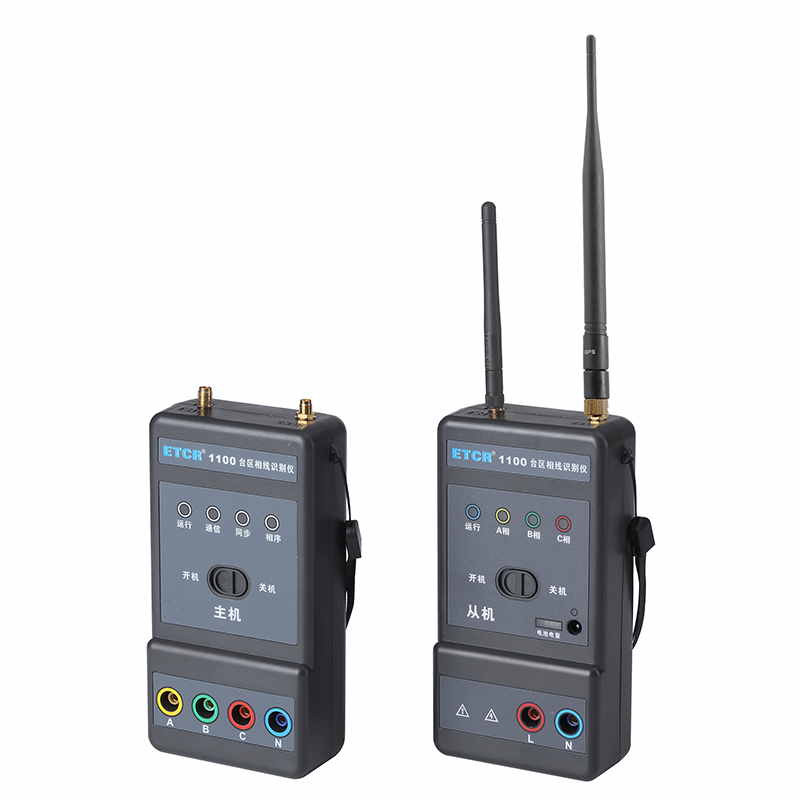 ETCR1100臺區相線識別儀由主機、從機、RF天線、測試線組成。通過衛星通信等新技術手段,能快速準確識別同一臺區距離較遠的線路兩點各相線相別是否一致。儀表通訊距離遠(最大可達8公里)臺區全覆蓋,即便城區建筑物密集臺區也能快速判斷相線,儀表操作簡易,準確直觀,體積小攜帶方便、安全快速,廣泛應用于電纜施工、設備安裝、線路維護工作,特別適合三相不平衡治理裝置安裝施工使用。