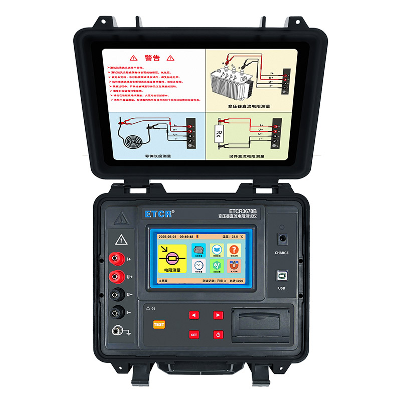 ETCR3670B變壓器直流電阻測試儀又稱變壓器繞阻測試儀,直流電阻測試儀,用于快速測量各種變壓器繞阻直流電阻。變壓器制造中半成品、成品出廠試驗、安裝、交接試驗及電力部門預防性試驗的必測項目,能有效發現變壓器線圈的選材、焊接、連接部位松動、缺股、斷線等制造缺陷和運行后存在的隱患。