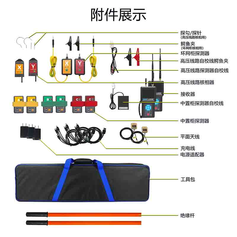 用于高壓線路、中置柜、環網柜等場所的遠程核相及近距離核相、相位測試、相序判斷及驗電等