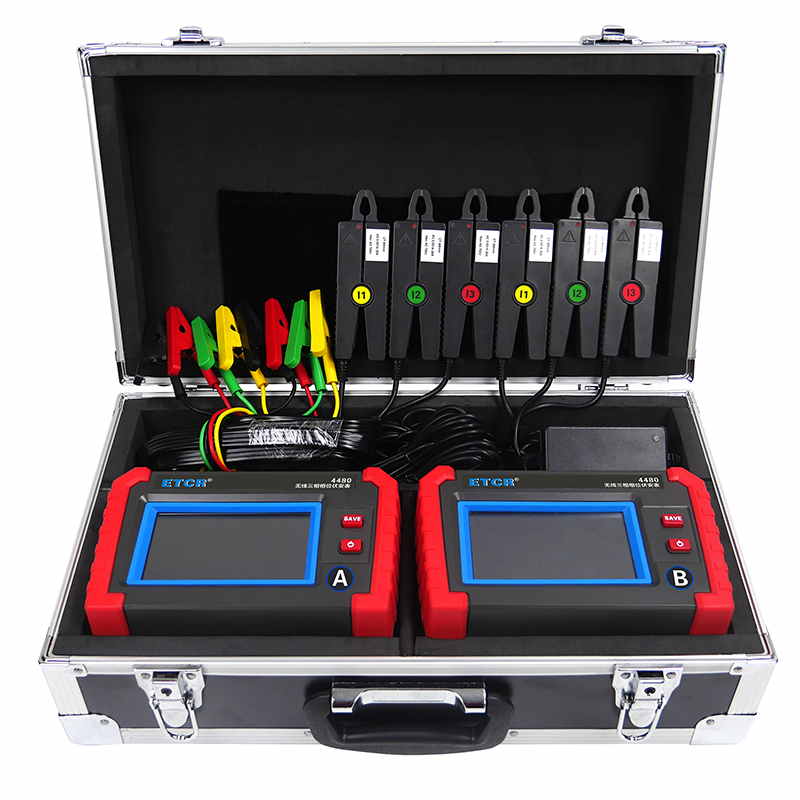 ETCR4480無線三相相位伏安表又稱三相電力參數(shù)測(cè)試儀、CT負(fù)荷測(cè)試儀、PT負(fù)荷測(cè)試儀,用于變電站內(nèi)不同位置的三相電力參數(shù)測(cè)量、PT無線核相、PT負(fù)荷測(cè)試、CT負(fù)荷測(cè)試、三相不平衡度測(cè)試、諧波分析等。儀表由2臺(tái)手持終端、6個(gè)電流鉗、2組電壓測(cè)試線等組成,2臺(tái)手持終端具有無線通訊及GPS通訊,可互設(shè)為主機(jī)或從機(jī),實(shí)現(xiàn)同步測(cè)量變電站內(nèi)不同位置之間電流、電壓、相位等參數(shù)。