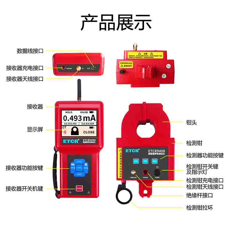 ETCR9400氧化鋅避雷器鉗形帶電測(cè)試儀又稱(chēng)氧化鋅避雷器全電流測(cè)試儀、氧化鋅避雷器泄漏電流測(cè)試儀、10kV氧化鋅避雷器帶電測(cè)試儀,用于35kV以下線(xiàn)路對(duì)氧化鋅避雷器的泄漏電流進(jìn)行測(cè)試,以判斷避雷器的性能是否劣化,測(cè)試時(shí)無(wú)需停電無(wú)需拆卸避雷器,操作安全快速。