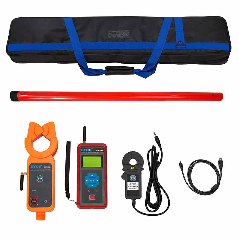 ETCR9500B無線高壓CT變比測試儀由一次電流鉗(高壓檢測儀)、二次電流鉗、主機、高壓絕緣桿、監控軟件、通訊線等組成,高壓電流鉗采用高性能坡莫合金制作,測試精度高。高壓電流鉗具有獨特的自動插拔結構,通過按壓或退拔絕緣桿能方便鉗夾或撤離被測導線,操作安全省時快捷,絕緣桿輕便,具有防潮﹑耐高溫﹑抗沖擊﹑抗彎﹑高絕緣特點,絕緣等級110kV。儀表具有存儲功能,USB通信接口,存儲數據可上傳電腦進行歷史數據讀取、查閱、保存、打印等。
